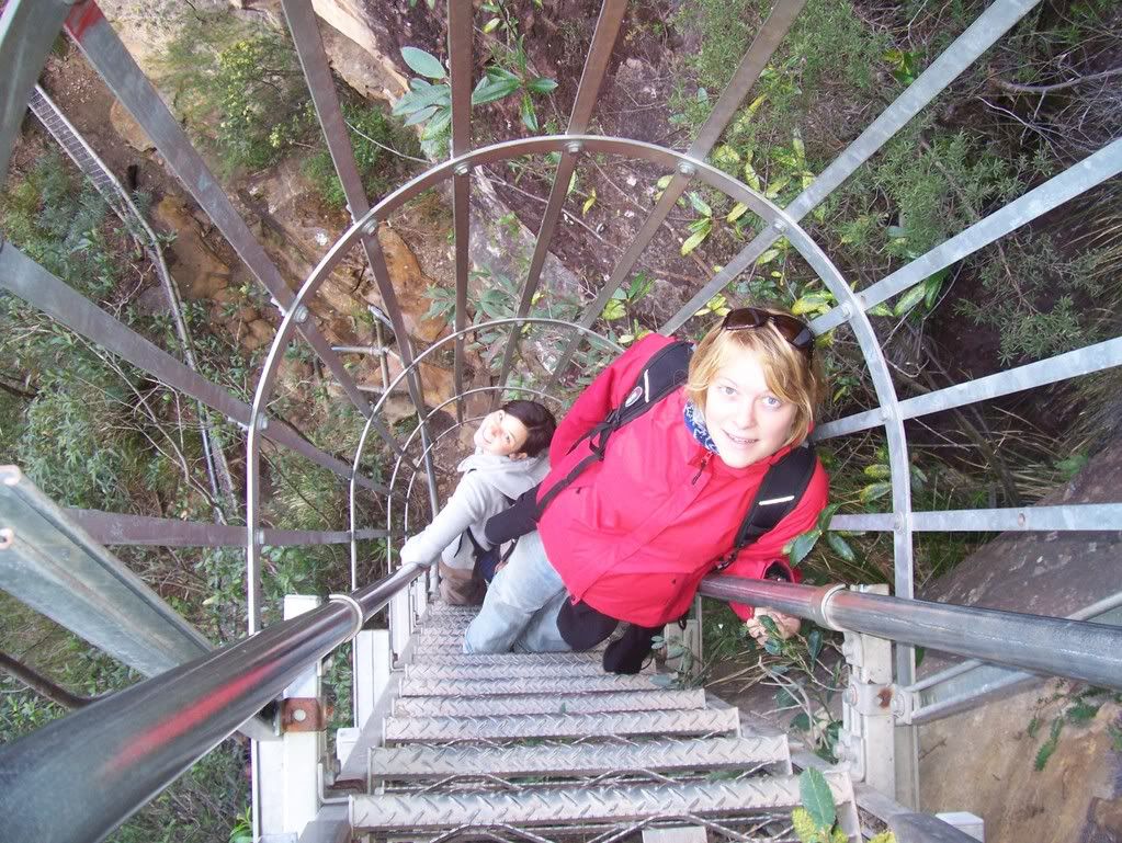 Am naechsten Tag ging erst mit dem Zug und spaeter wieder zu Fuss weiter auf den naechsten Erkundungstrip in den Bergen, aber diesmal nicht in Katoomba sondern in Wentworth Falls. Ross hat uns eine tolle Wanderung, die so 5 Stunden dauern sollte empfohlen. Wie der Name schon sagt, haben wir einen riesigen Wasserfall zu sehen bekommen, der zwar jetzt nicht so viel Wasser gefuehrt hat, der aber ueber bestimmt hundert Meter in die Tiefe gestuerzt ist. Unser Weg war auch sehr sehr abenteuerlich und wir sind richtige Leitern entlang gekraxelt. Es gab sogar eine Stelle an der wir uns ein bisschen Abseilen mussten. Von ganz oben mit einer klasse Aussicht haben wir uns so viele viele Hoehenmeter hinab in den Regenwald vorgearbeitet und sind dann von der Lanschaft beeindruckt immer eifrig weiter gewandert. Picknick gab es an einem Felsvorsprung mit Hammeraussicht!! Wir haben dort sogar eifrig eine Riesen-Ameise beobachten koennen die versucht hat ein Stueck Kaese weg zu transportieren (naja aber gut, zu ausfuehrlich solls nicht sein.... ;) )